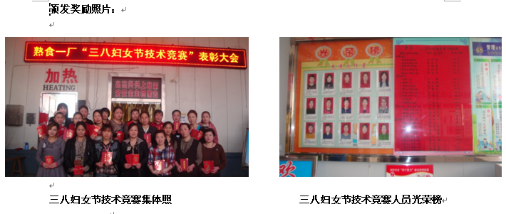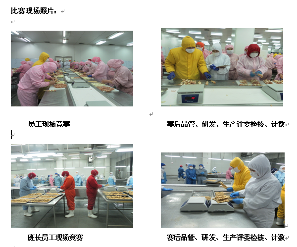 今年是“三八”國(guó)際勞動(dòng)?jì)D女節(jié)103周年。2013年3月7日,熟食一廠在公司領(lǐng)導(dǎo)及人力資源部、研發(fā)部、品管部等各部門的大力支持下舉辦了生產(chǎn)一線員工崗位技能競(jìng)賽活動(dòng),競(jìng)賽圓滿成功,并在5月1日對(duì)獲獎(jiǎng)員工進(jìn)行了獎(jiǎng)金發(fā)放,此次活動(dòng)不僅宏揚(yáng)了公司優(yōu)秀的人文管理文化,同時(shí)還給廣大女性員工過(guò)一個(gè)歡快愉悅的節(jié)日,增強(qiáng)女職工的凝聚力,促進(jìn)團(tuán)隊(duì)和諧發(fā)展。此次活動(dòng)共發(fā)放獎(jiǎng)金8900元,其中:明星班長(zhǎng)5人,共發(fā)放2500元;崗位明星8人,共發(fā)放3200元;崗位標(biāo)兵4人共發(fā)放1200元;崗位能手10人共發(fā)放2000元。